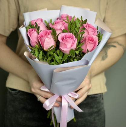 Купить букет из 9 розовых кенийских роз в Смоленске